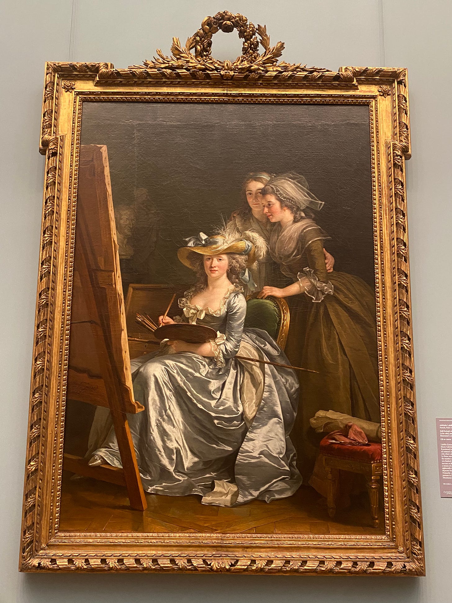 The specific piece I’m highlighting is Self-Portrait with Two Pupils, dated 1785, which is on display at The Metropolitan Museum of Art. After hearing the story behind the painting, my friend recently visited the museum to see it. She mentioned that it took her a while to find and that it’s massive, taller than her!